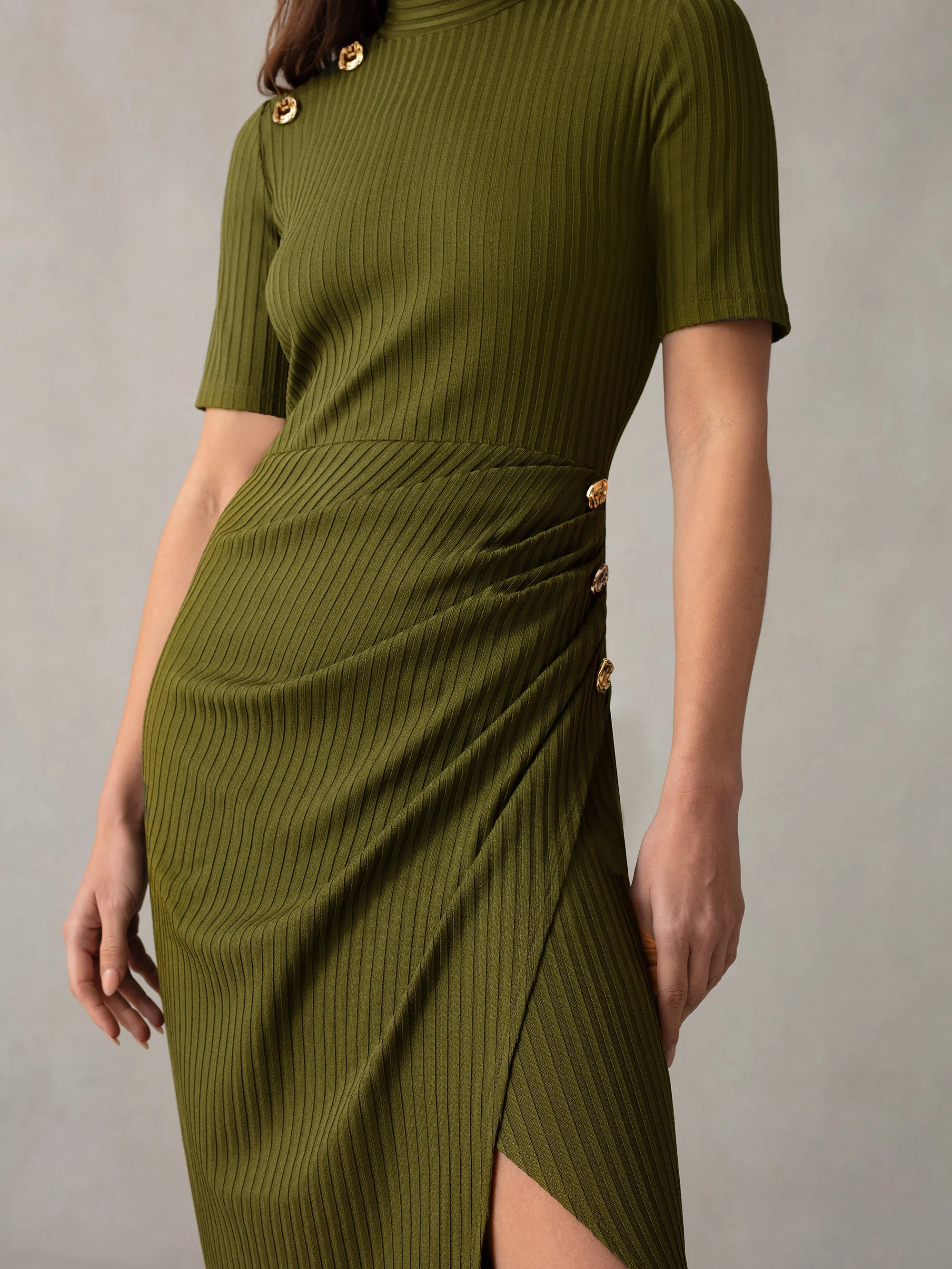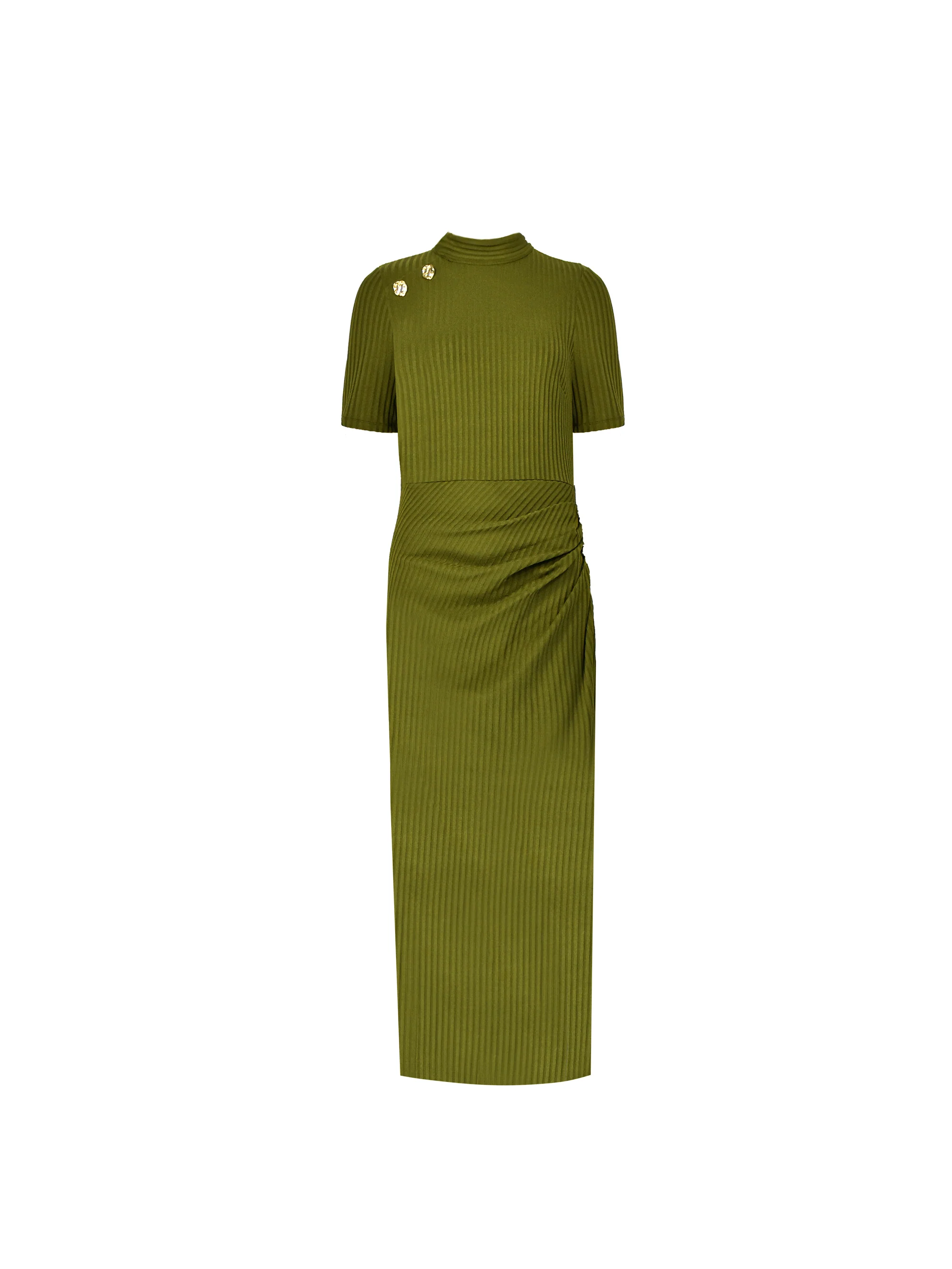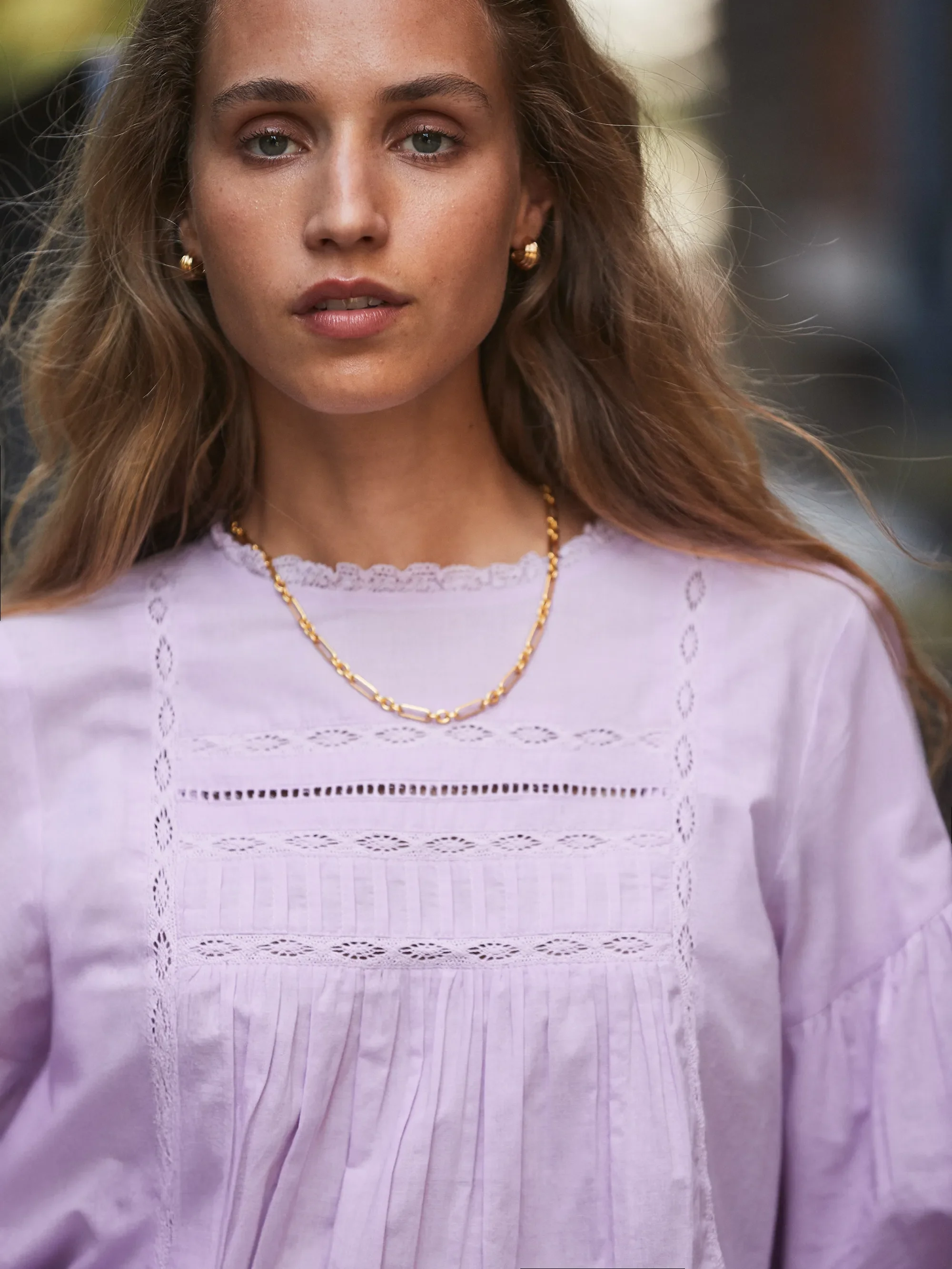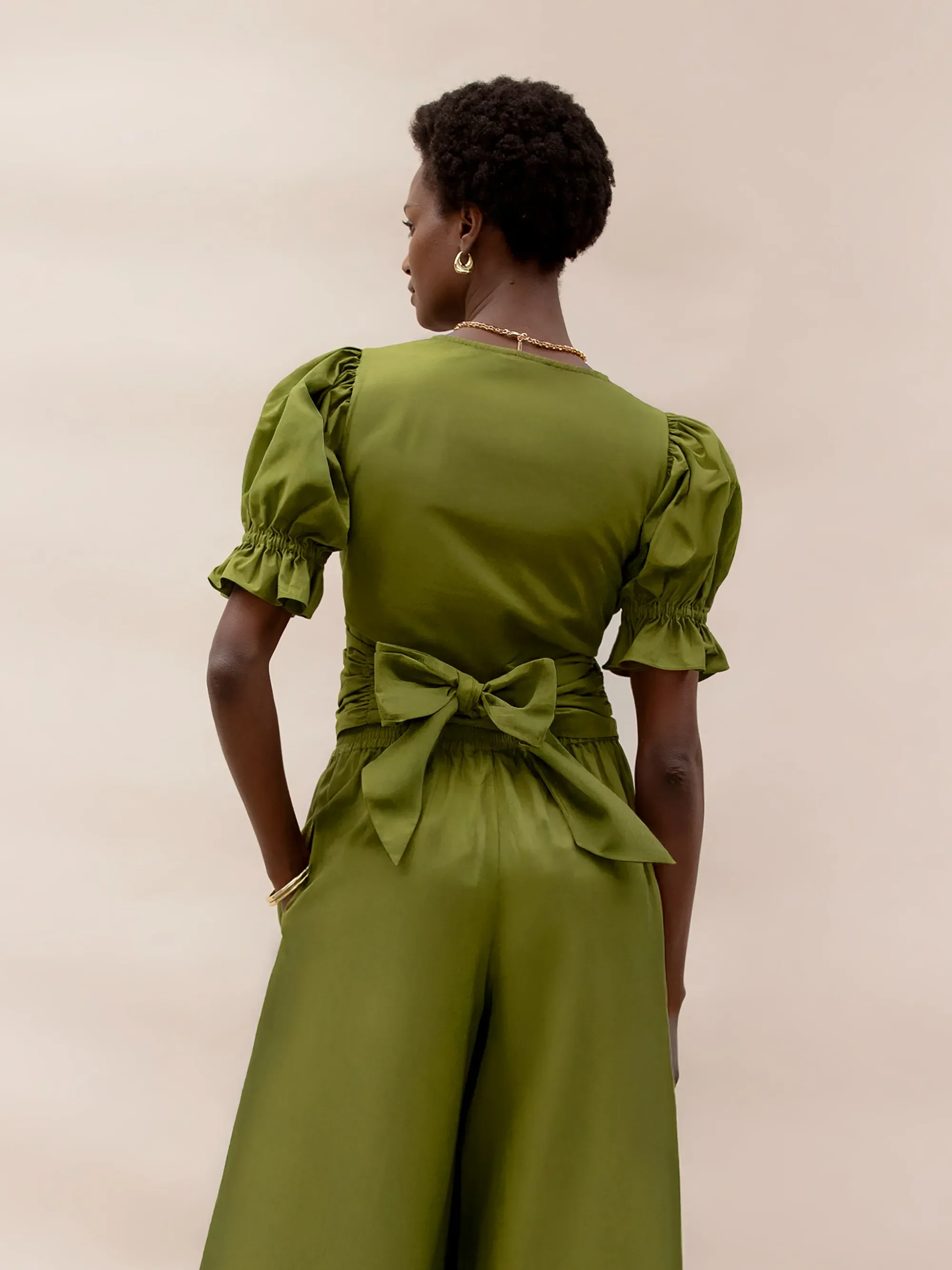 Magenta Gathered-Sleeve Cotton Voile Midi Dress