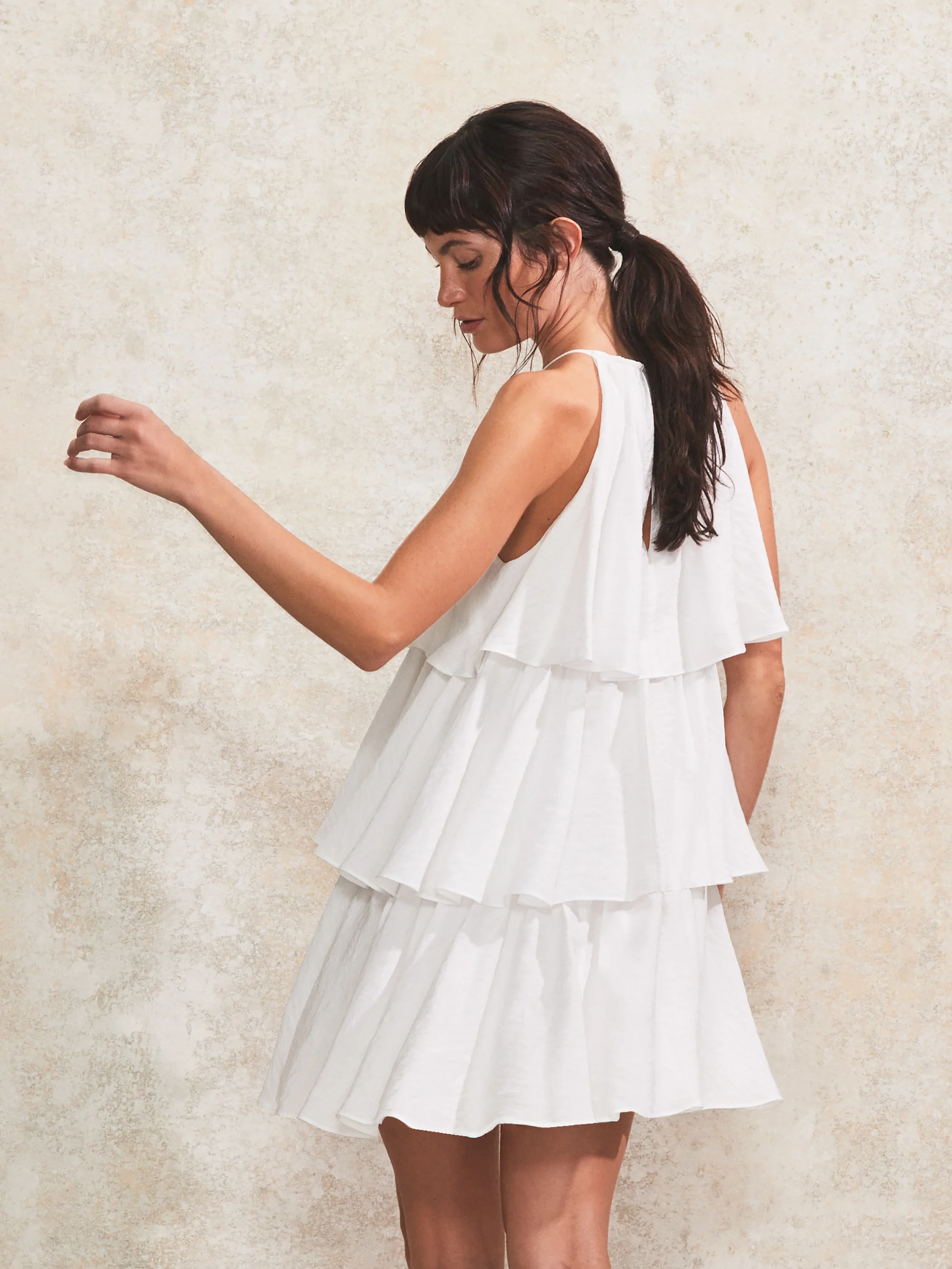 Petite Navy Frill-Detail Cheesecloth Mini Dress