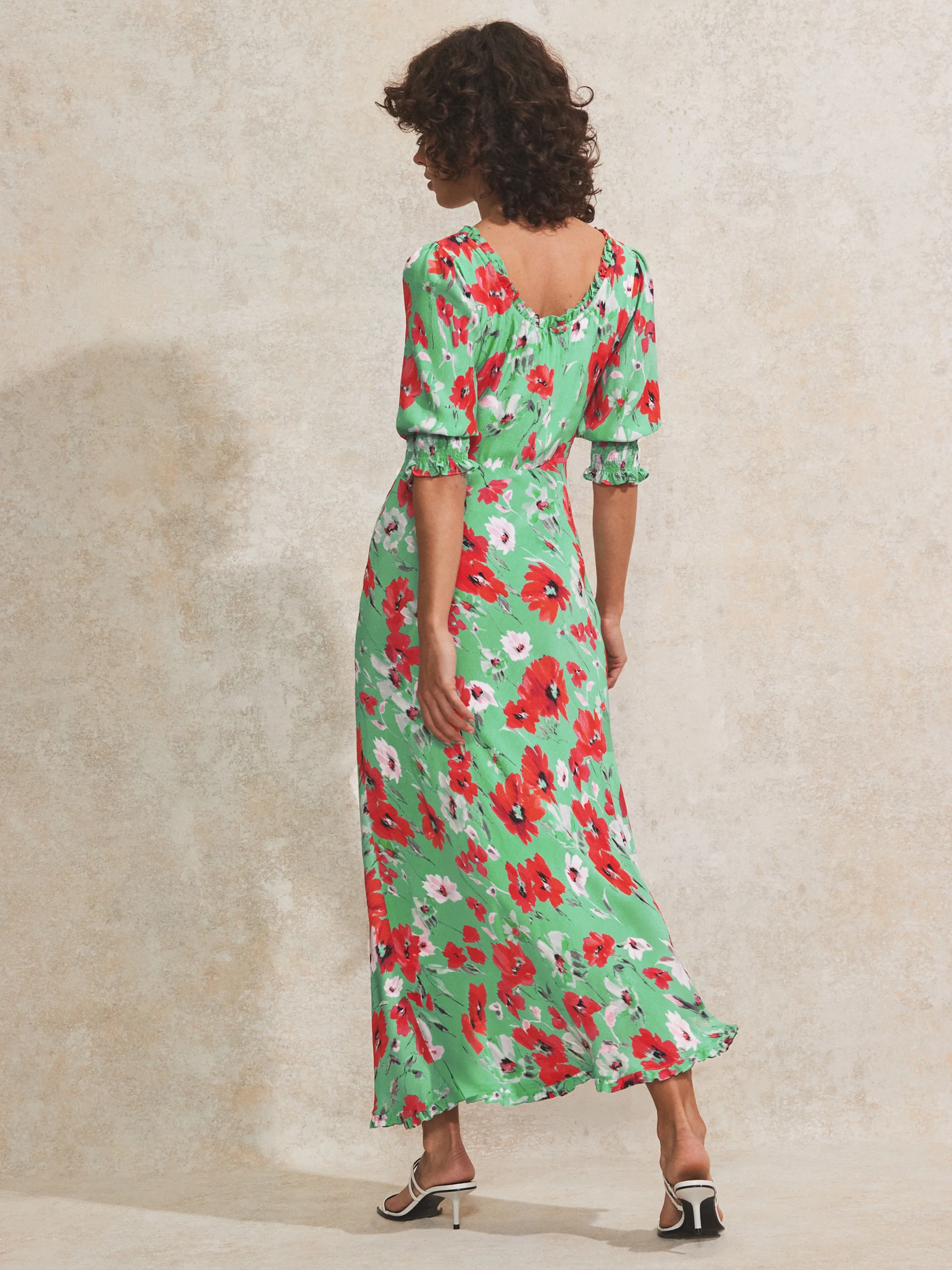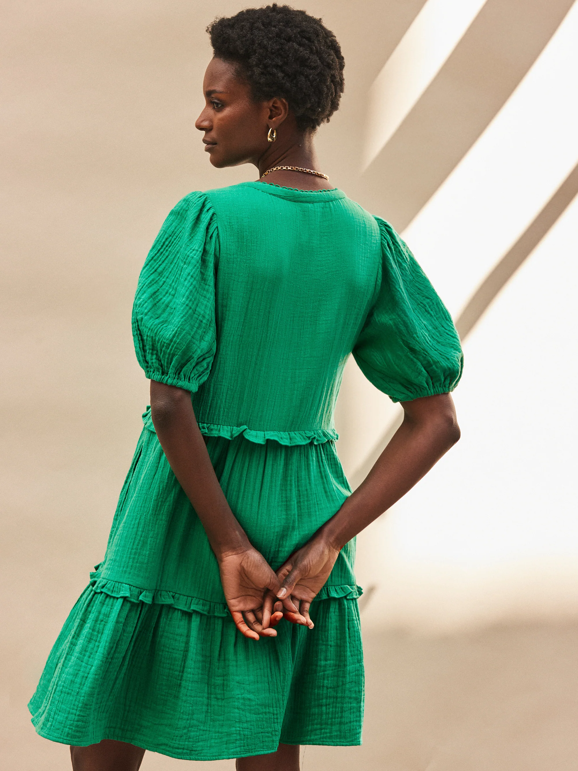 Petite Green Frill-Detail Cheesecloth Mini Dress