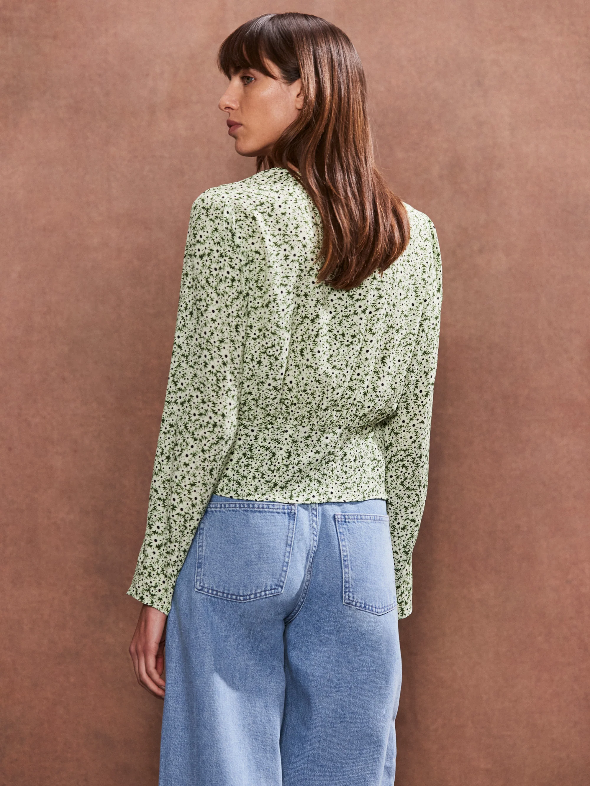 Green Ditsy Pintuck Blouse