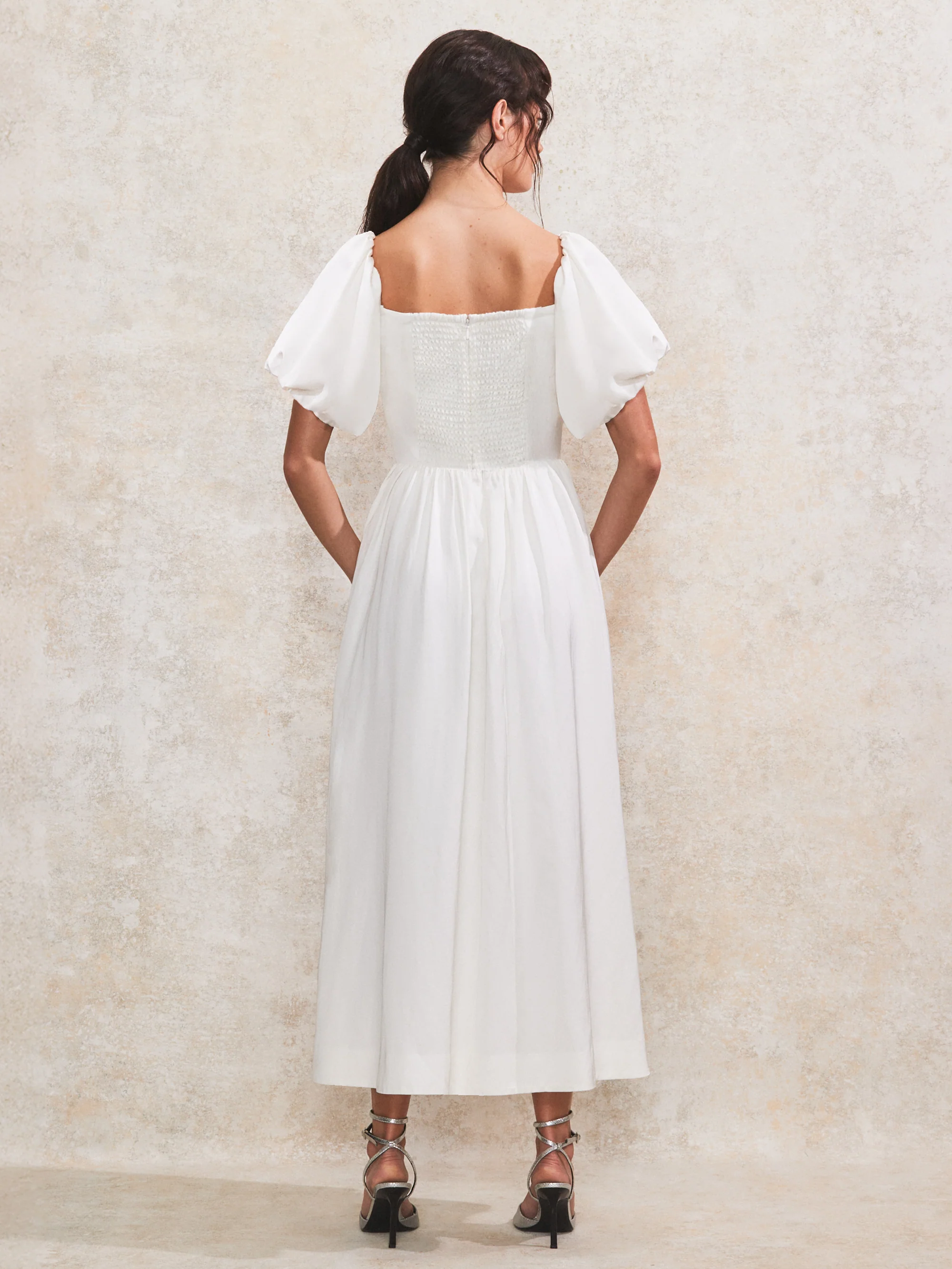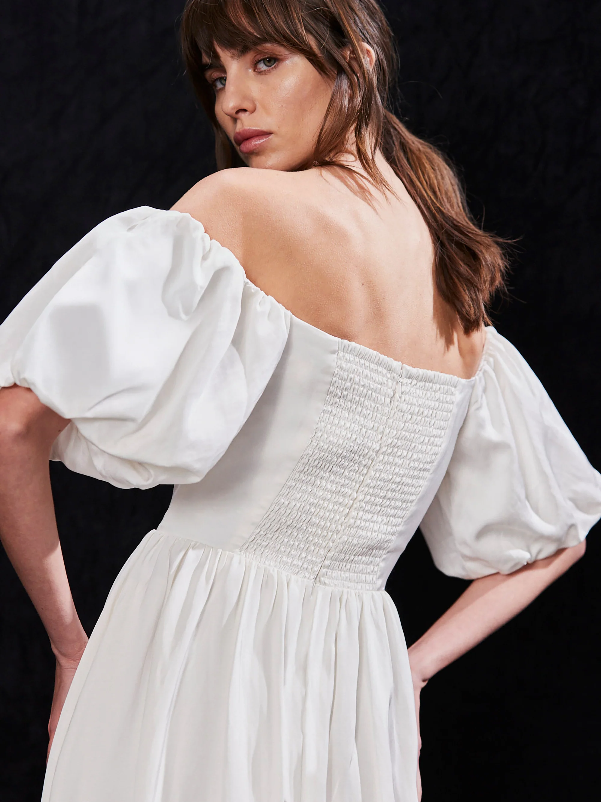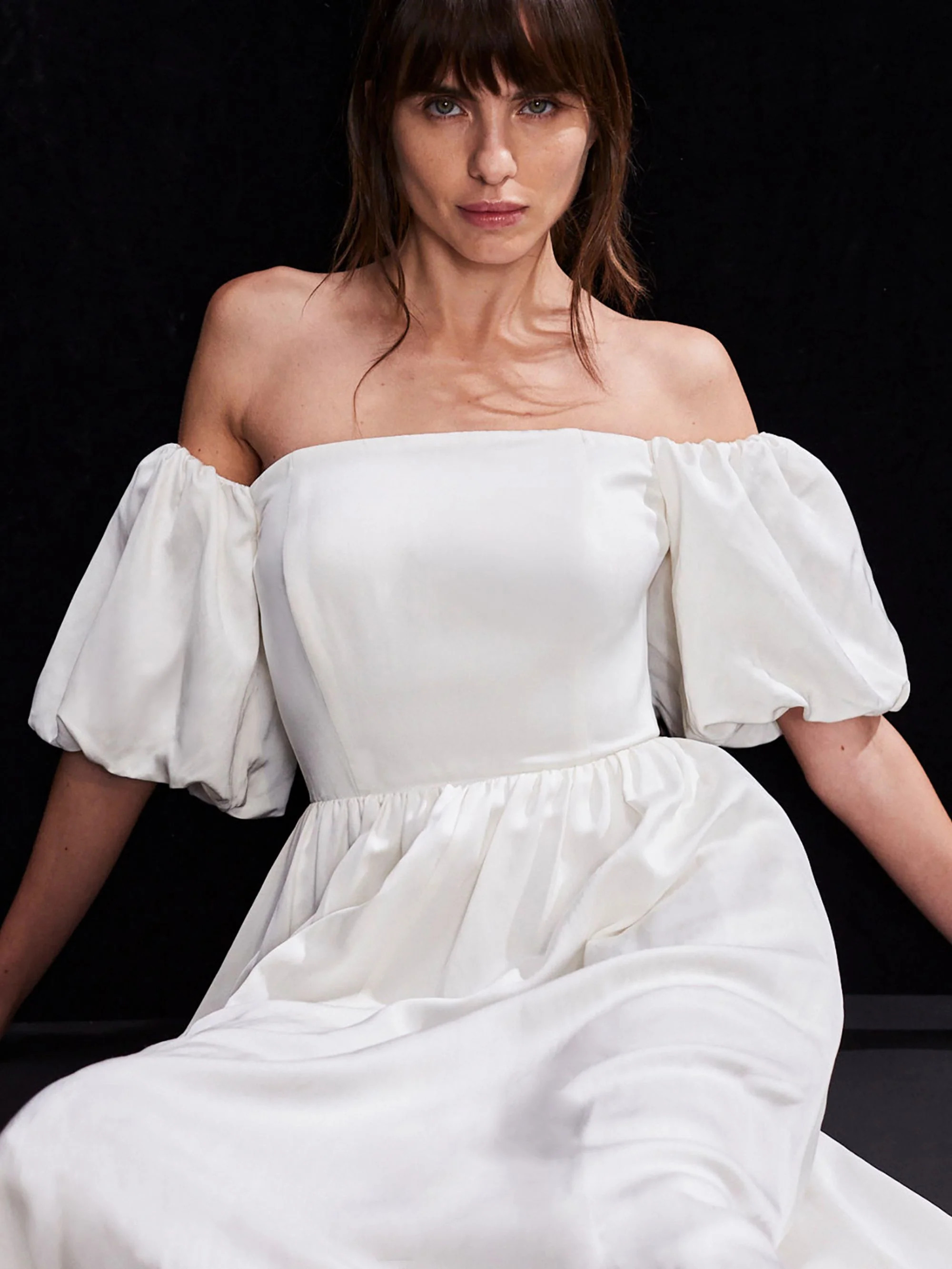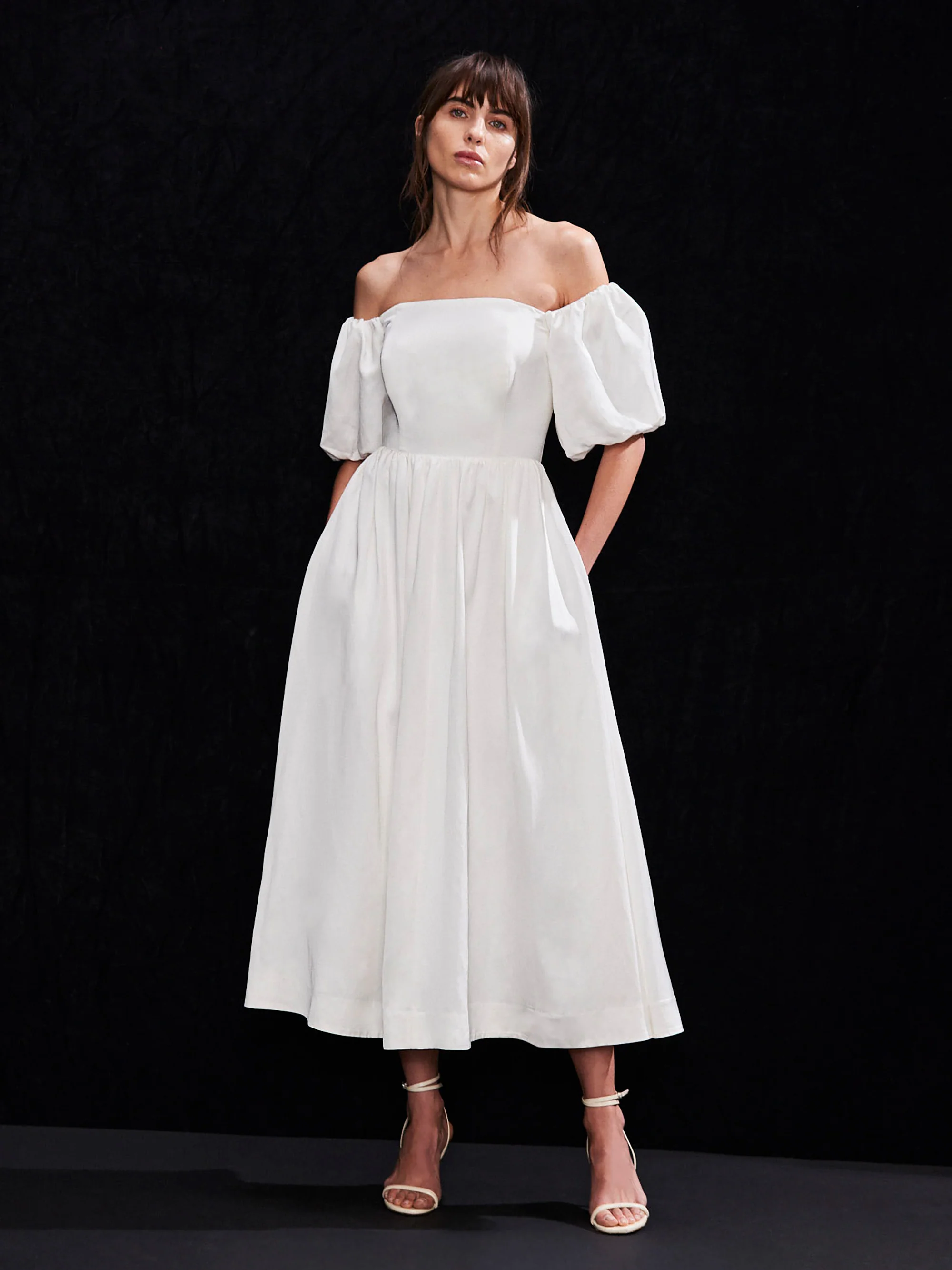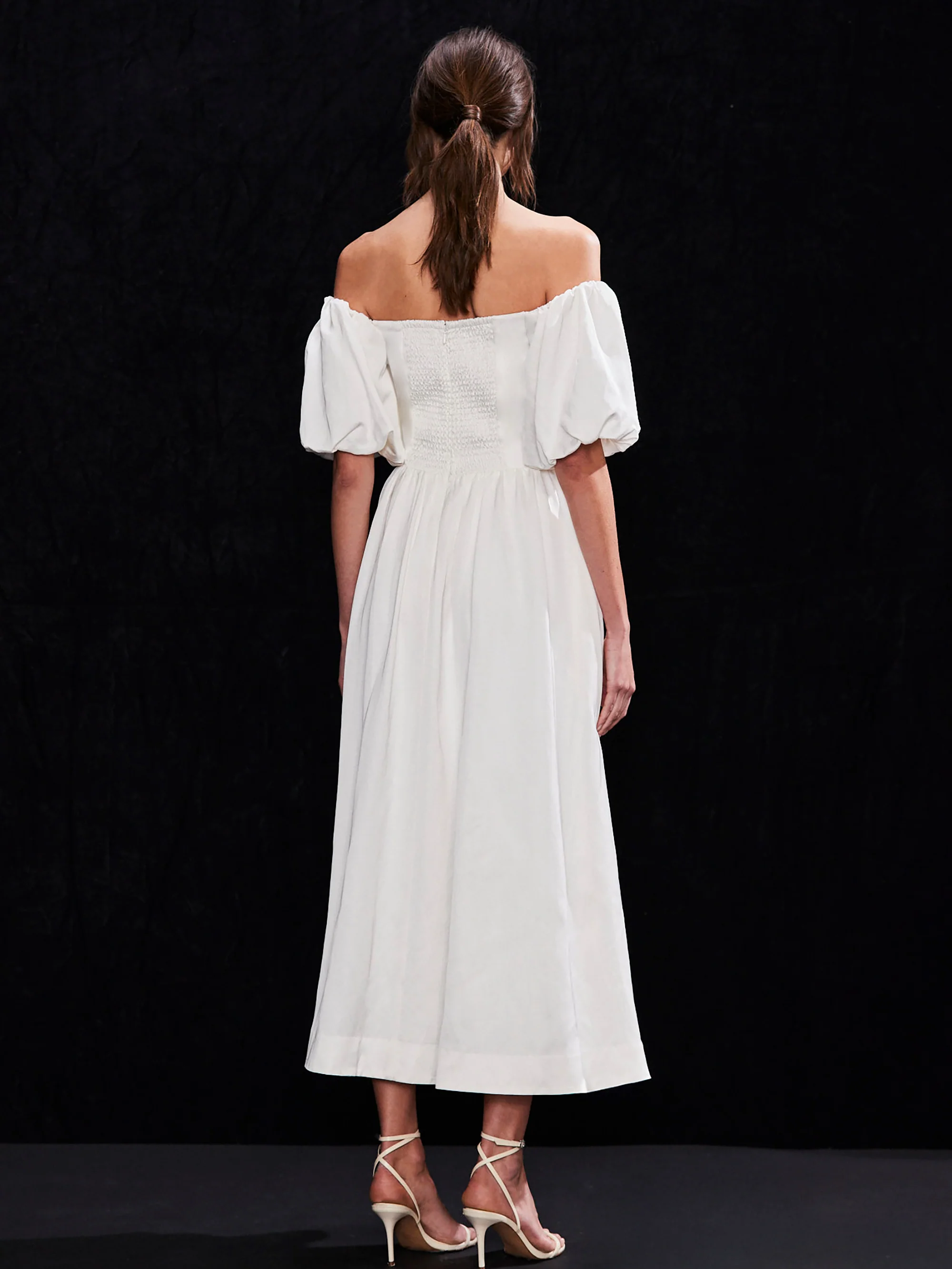 Alba Ivory Bardot Puff Sleeve Maxi Dress