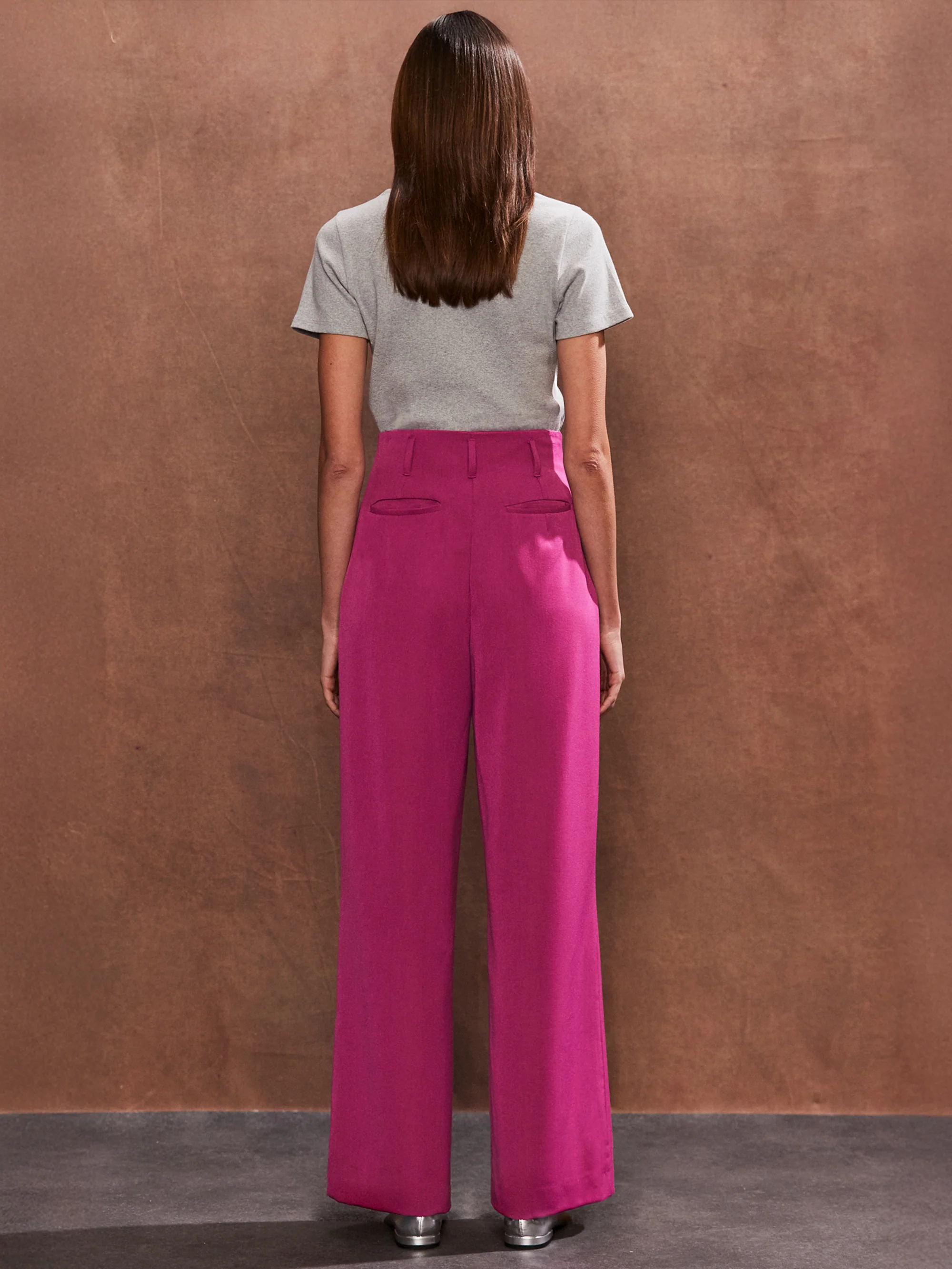 Pink High-Waist Wide-Leg Trousers