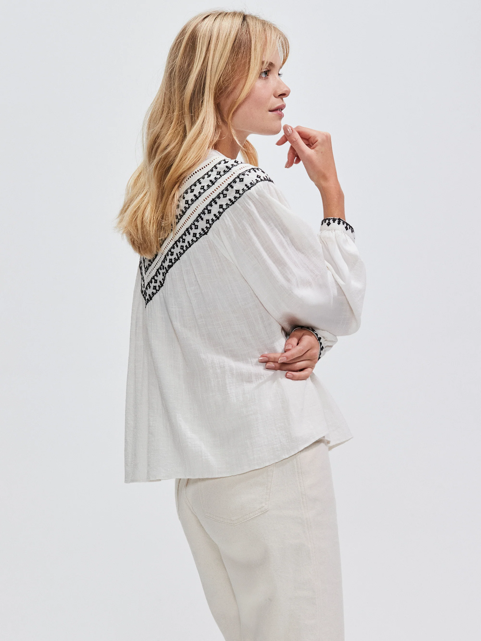 Ivory Multi Embroidered Detail Blouse