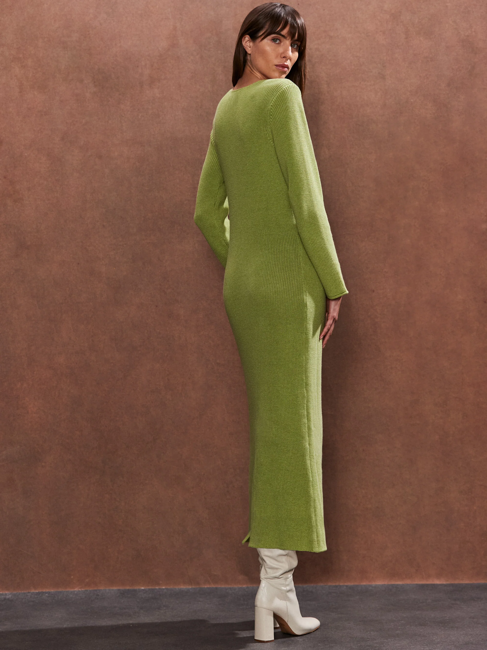 Sage V Neck Knitted Midi Dress